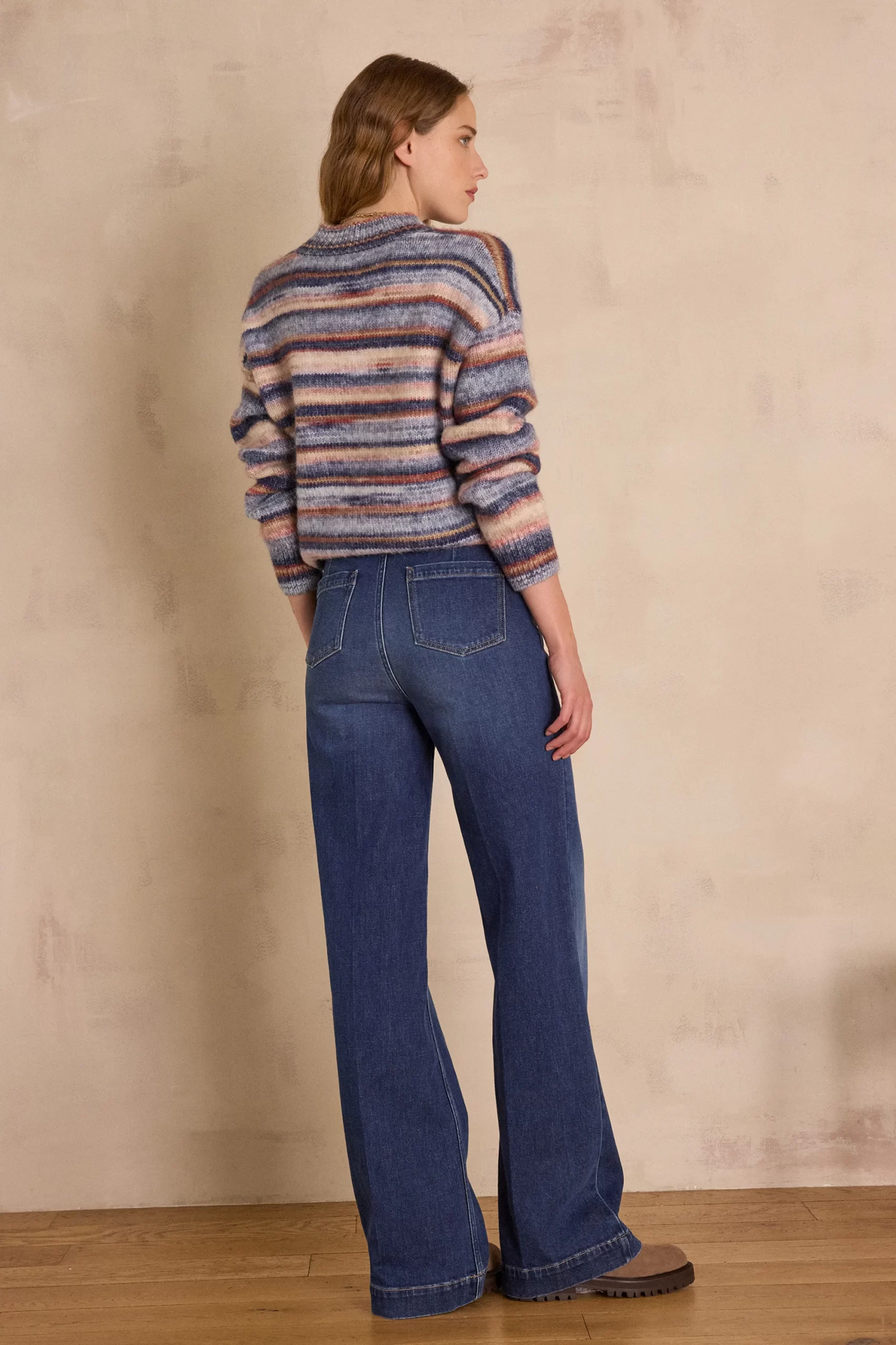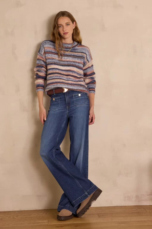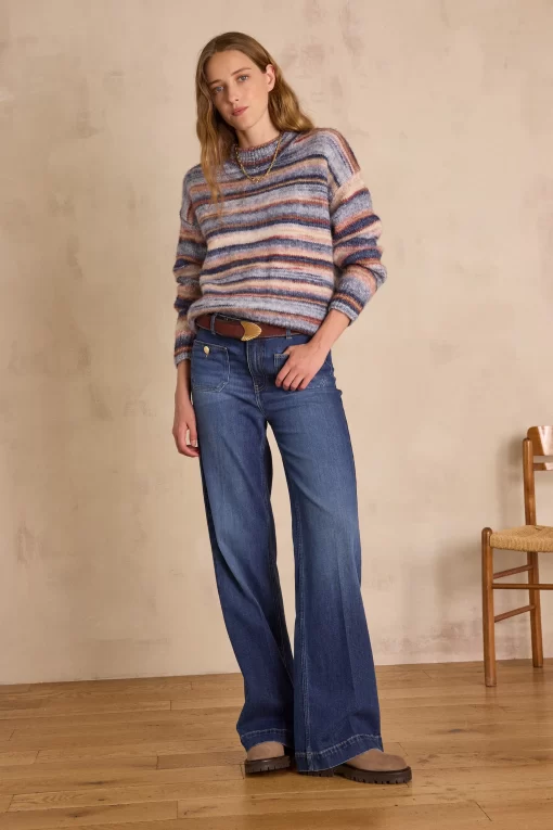 Louise is 1.75m tall and wears size 34. With the ANAIS jeans, the model wears the STANISLAS jumper and VICTOIRE boots.This model runs large
