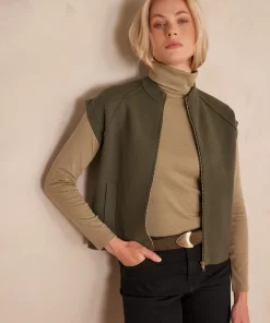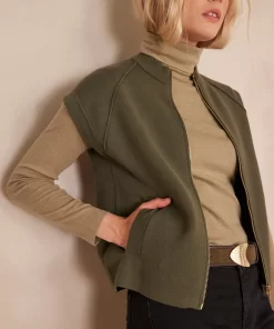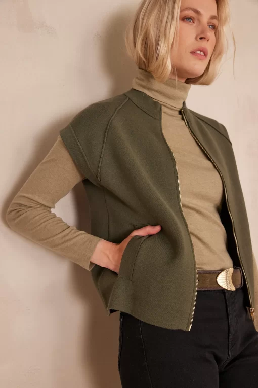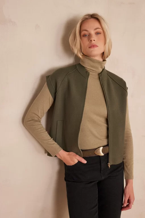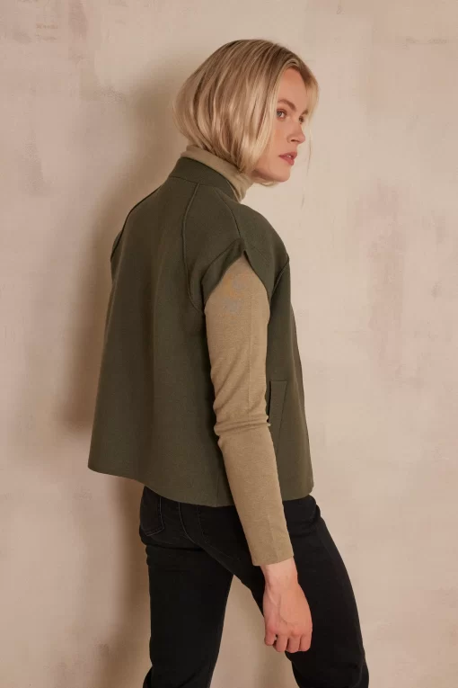 Let yourself be seduced by BATISTA, our sleeveless jacket in a bright khaki shade.