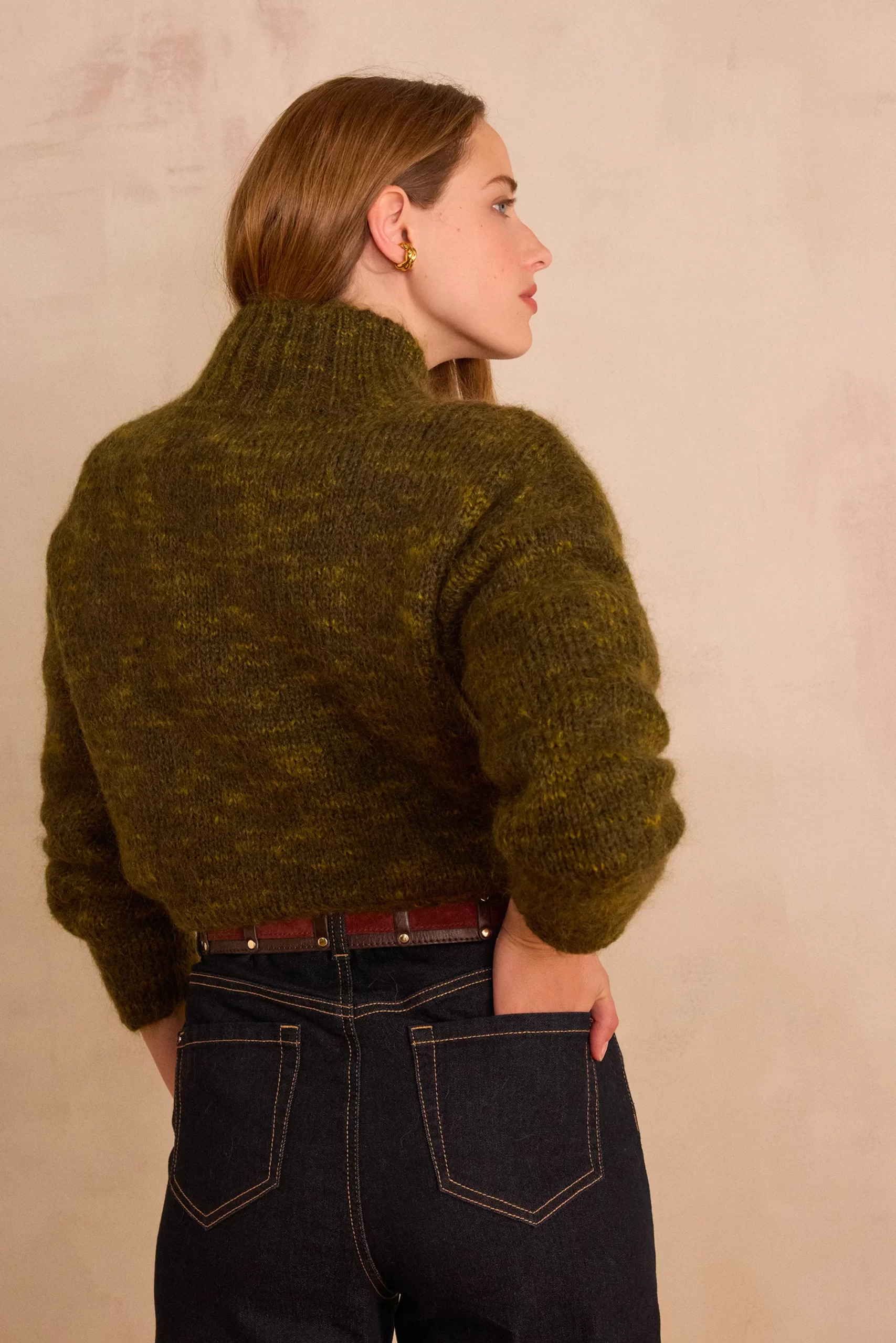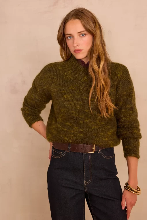 LOUISE is 1.75m tall and wears a size S. With the BRONSON jumper, the model wears the SERAPHINE blouse, AGATHE jeans and ANITA parka.This model fits true to size