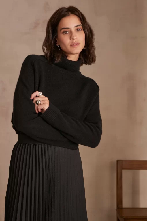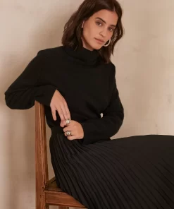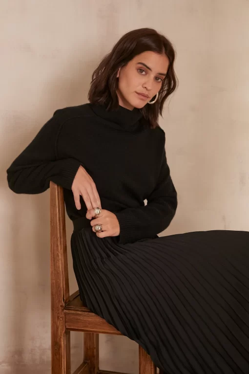 Slip your polo neck jumper into a pleated long skirt for an elegant look in any situation.