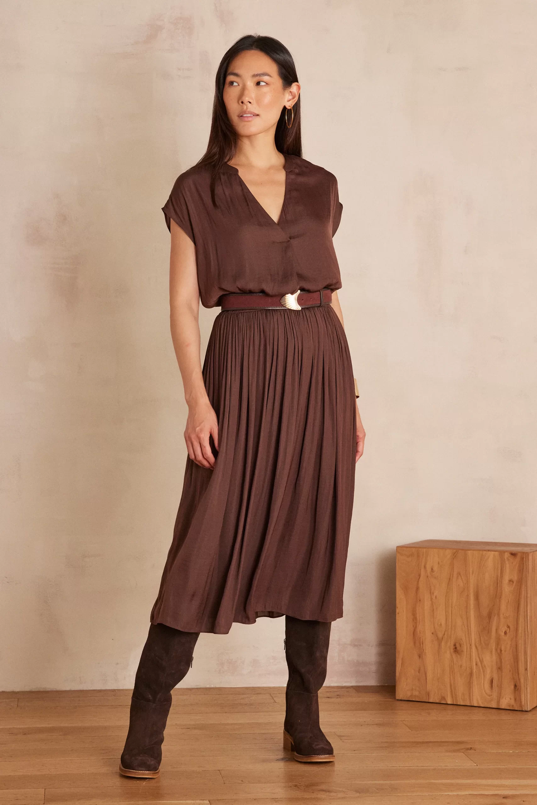 Let yourself be seduced by CRYSTAL, our new pleated skirt with an elegant and timeless style. Its fluid cut and refined pleats bring a touch of femininity to your wardrobe.