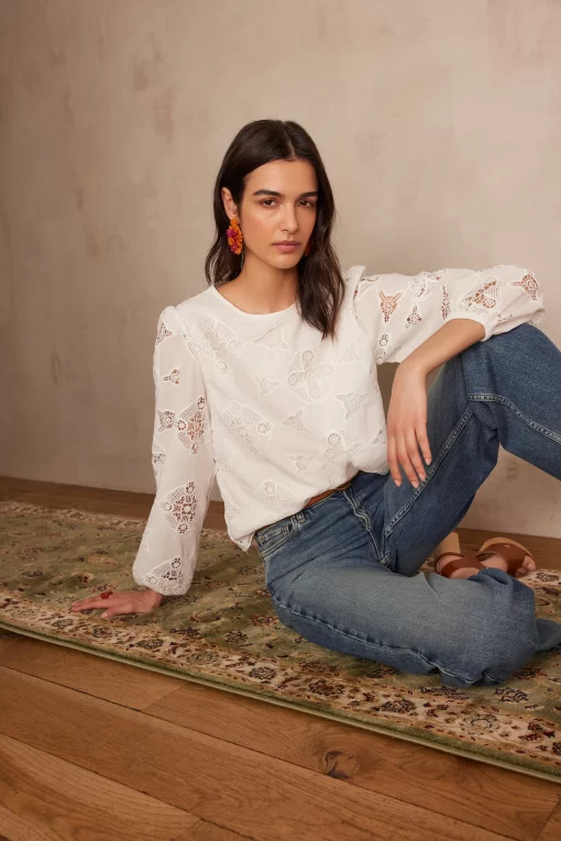 Elda is 1m80 tall and wears a size 36. With her LISA jeans, the model wears the PALMA blouse and MAX sandals.