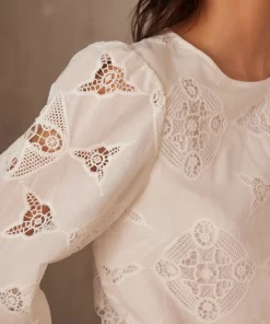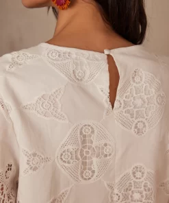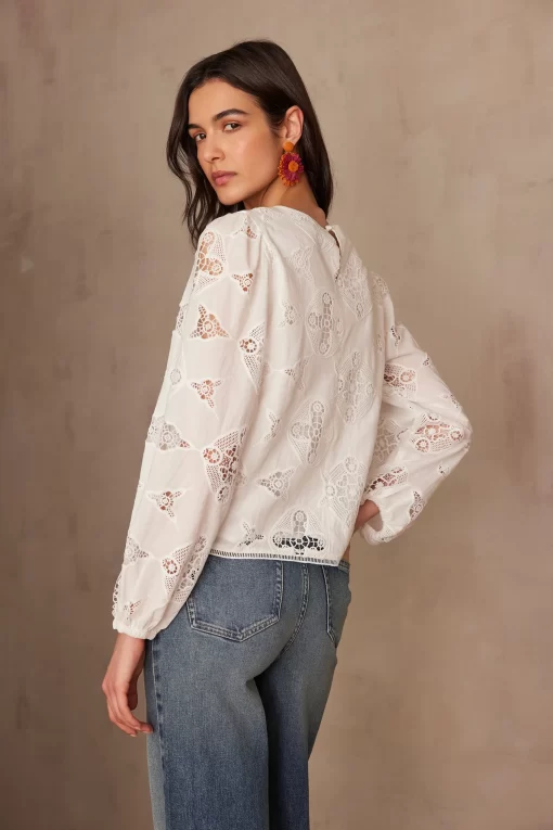 Its delicate broderie anglaise adds a touch of femininity. Thanks to its pure white color, this blouse embodies timeless elegance and lightness.