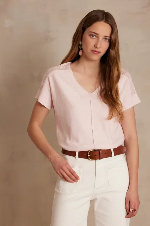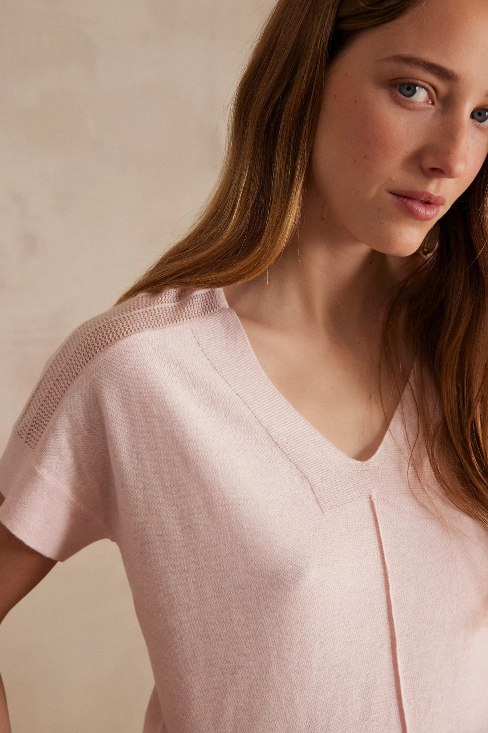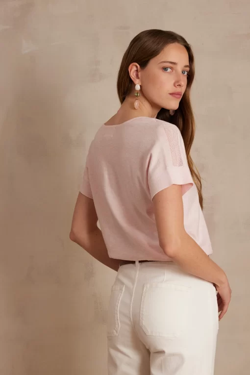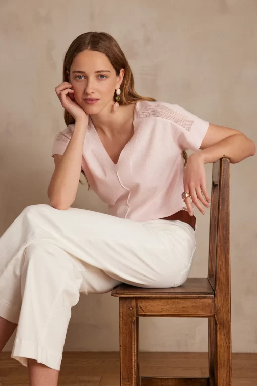 We're in love with this SCOTTY short-sleeved jumper in organic cotton that combines elegance and eco-responsibility. Its straight cut and flattering V-neck enhance all silhouettes.