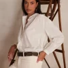 Sam is 1.72m tall and wears size 36. With the SELENE shirt, the model is wearing SANDY jeans and the LOULOU cardigan.