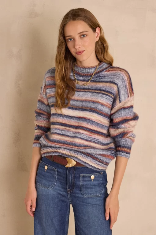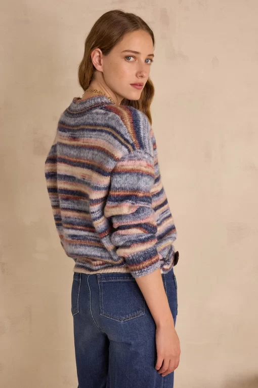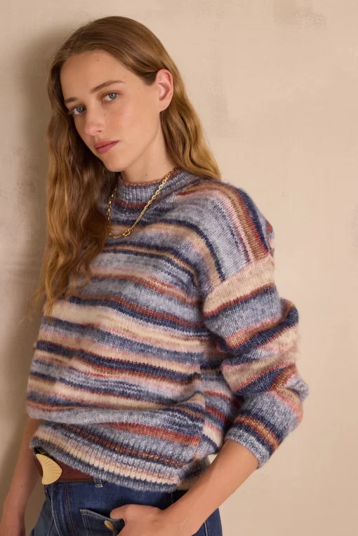 Louise is 1.75m tall and wears a size 34. With the STANISLAS jumper, the model is wearing ANAIS jeans and VICTOIRE boots.This model fits true to size