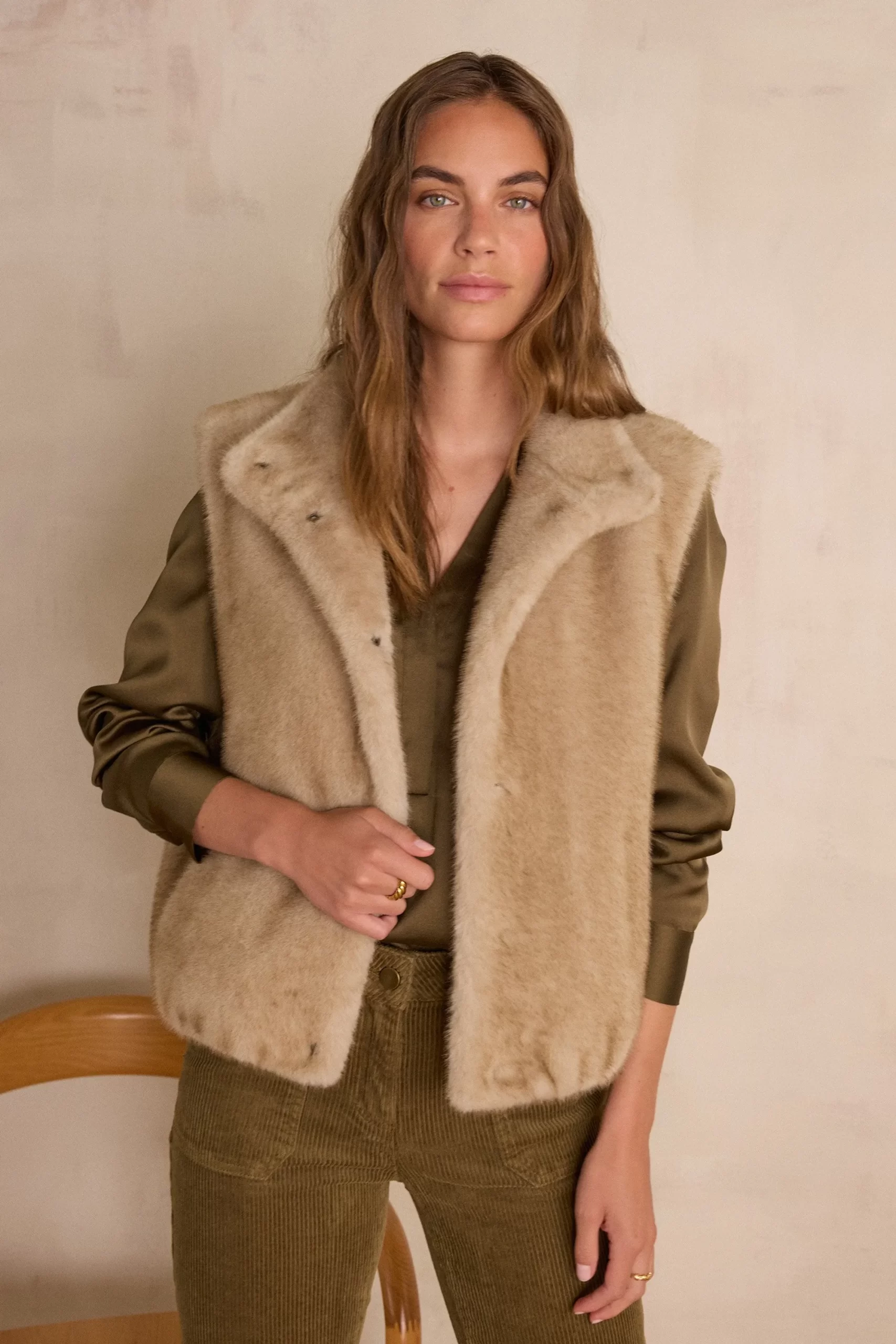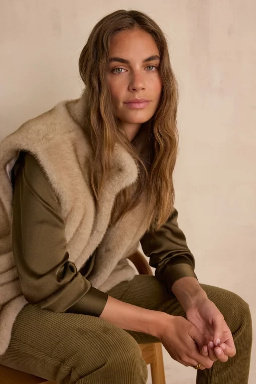 Maison 123 Women’s Suzanne Sleeveless Fluffy Cardigan | Beige